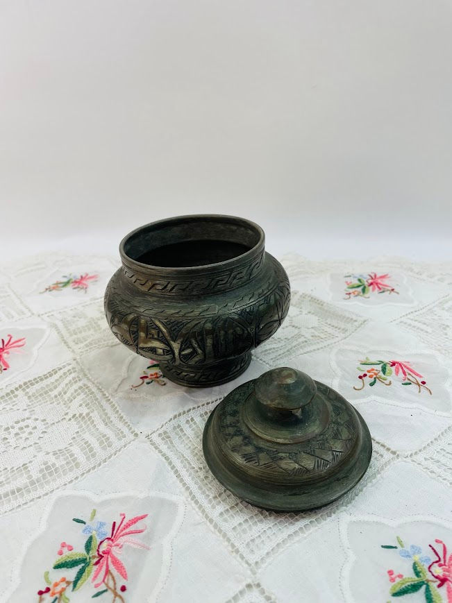 כד נחושת עתיק מעוטר בחריטה – עבודת יד מהמזרח